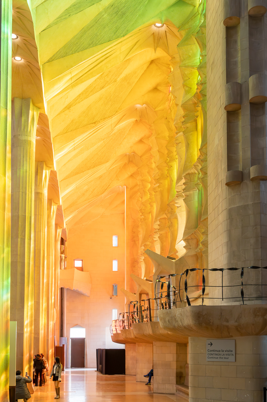 Stejně jako v Sagrada Família, i tady vás uvnitř nadchne neuvěřitelně promyšlená hra světel a stínů i lehce psychedelické stropy a různé překvapivé detaily.
