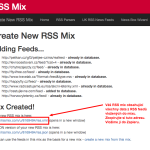 - Jak vidíte v aplikaci, Zapier umožňuje načítat data pouze z jediného RSS feedu. My jich ale máme desítky. Co s tím? Potřebujeme všechny dostat do jediného. K tomu nám poslouží jiná aplikace, která dokáže vybrané RSS feedy namixovat do jediného. Jmenuje se příhodně RSS MIX a najdete ji na adrese rssmix.com. Otevřete si ji v novém okně. Zde do textového pole vložíte všechny RSS adresy, které chcete promixovat. My jich pro ilustraci máme pár. Následně si svůj mix pojmenujete a kliknete na “Create!” Získáte url adresu RSS feedu, který obsahuje všechny RSS feedy, které jste do mixu nasypali. Viz obrázky.