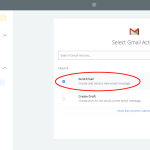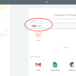 - Máme nastavený RSS feed. Teď potřebujeme definovat druhou část, tedy co se má stát. Vlevo v panelu vybereme u kroku 2 Choose app. Dáme vyhledat Gmail a vybereme ho. Zvolíme “Send email” a klikneme na “Save and Continue”