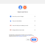 - Nyní je potřeba propojit Zapier s vaším Gmail účtem. Musíte ho již mít vytvořený. Klikneme na “Connect a new account” v novém okně se vám otevře přihlášení do Gmailu – pokud jste již přihlášeni, stačí Zapieru povolit propojení s Gmail účtem. Na další obrazovce kliknete na “Save and Continue” viz obrázky níže.