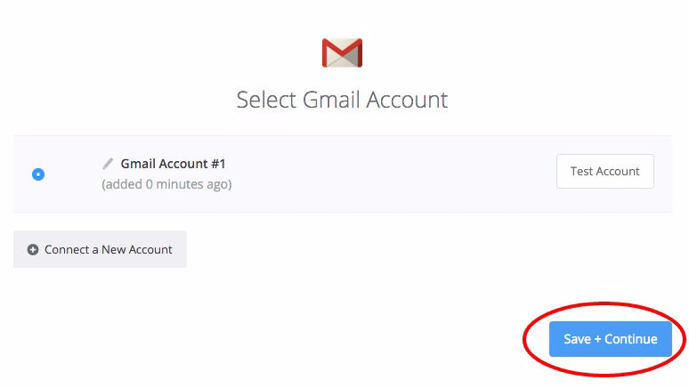 - Nyní je potřeba propojit Zapier s vaším Gmail účtem. Musíte ho již mít vytvořený. Klikneme na “Connect a new account” v novém okně se vám otevře přihlášení do Gmailu – pokud jste již přihlášeni, stačí Zapieru povolit propojení s Gmail účtem. Na další obrazovce kliknete na “Save and Continue” viz obrázky níže.